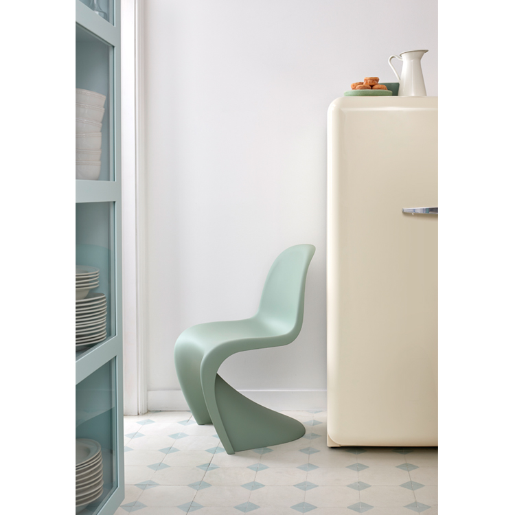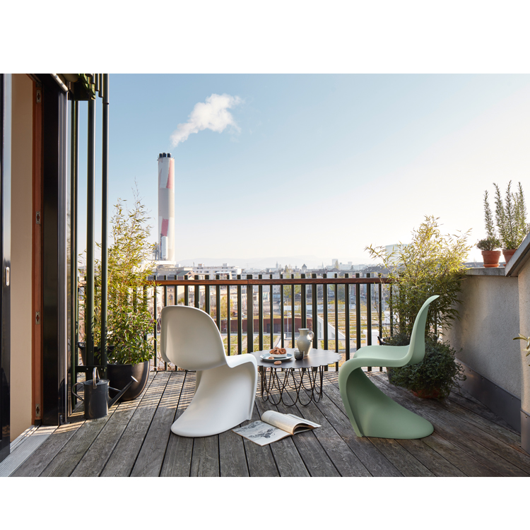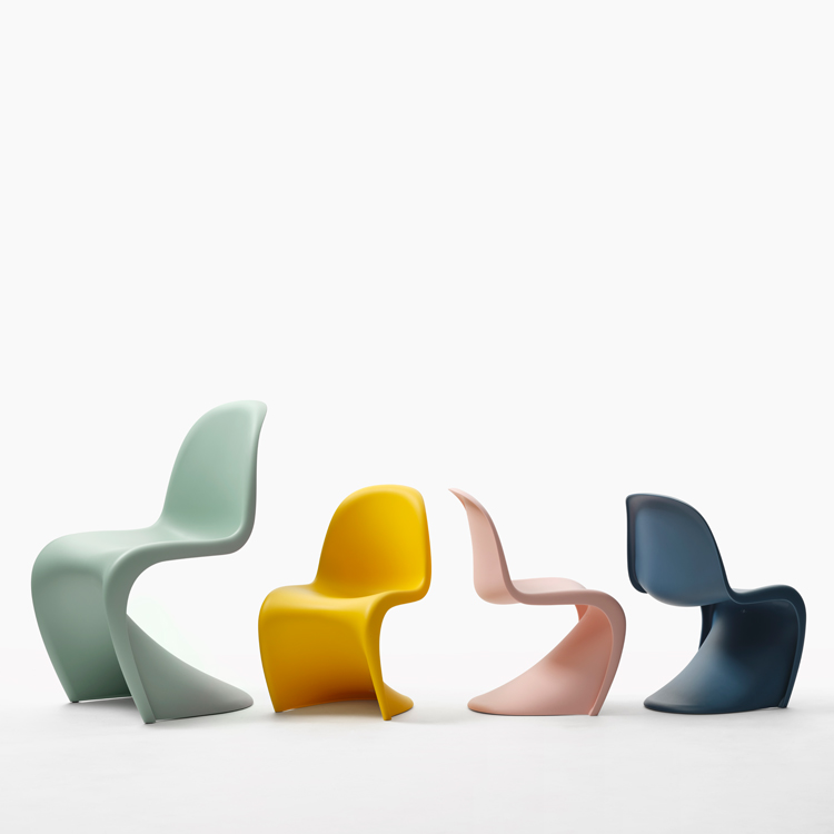 캔틸레버 구조와 유연한 소재로 이루어진 팬톤체어의 내구성과 편안함.