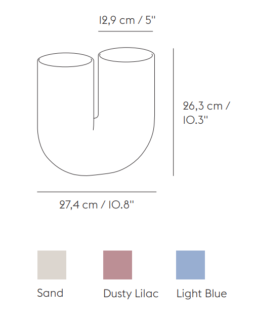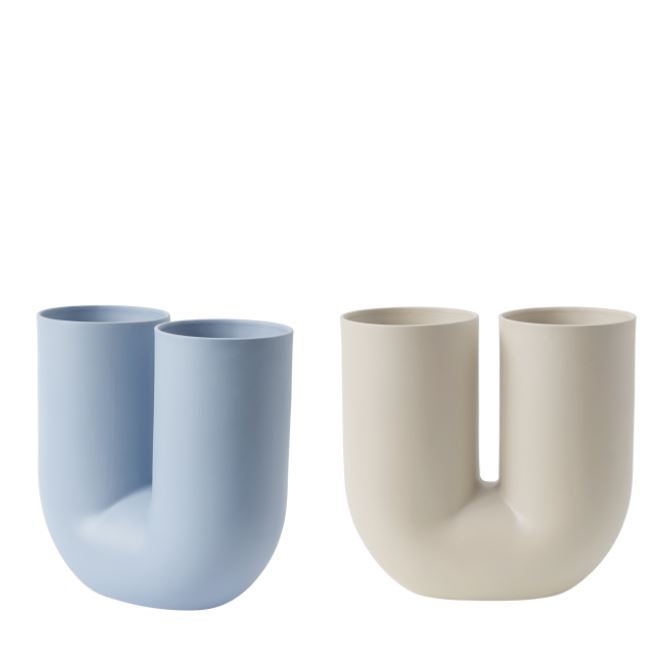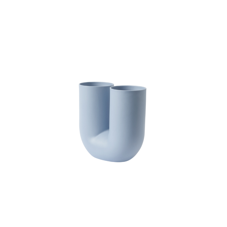 With its double opening, the Kink Vase adds a sculptural sentiment to the room, even when not in use. The design is made in porcelain that has been glazed on the inside for a refined touch.