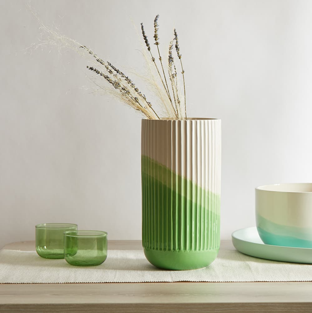 Material: glazed ceramic; dip-dyed by hand