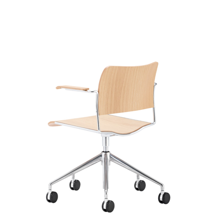 40/4 Swivel arm chair_seat&back : oak veneer armrest : oak veneer / base : chrome with castors