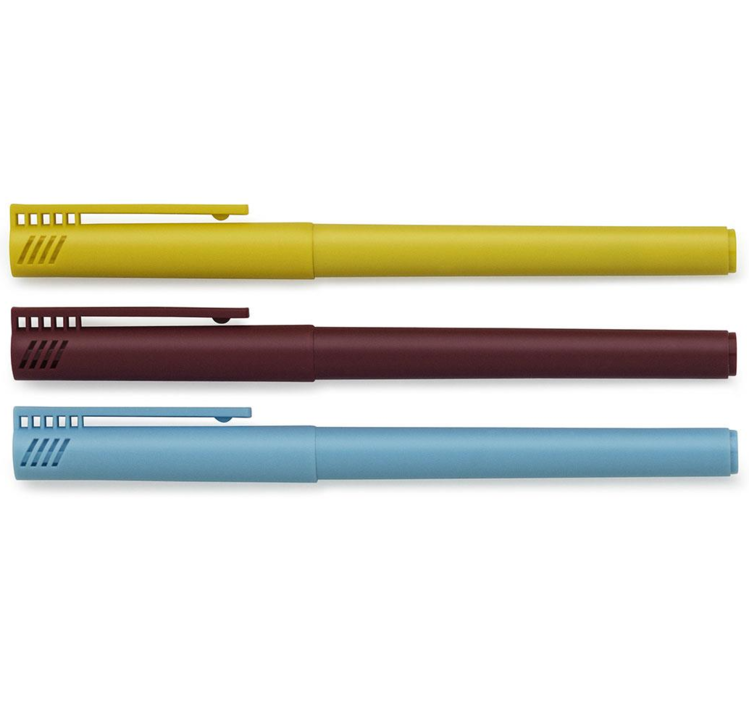 Sold in bags with 3 pcs. in 3 different color mixes. The felt pens have a smooth mat surface. The felt pen writes with black ink. The Normann Copenhagen logo printed in gold foil.